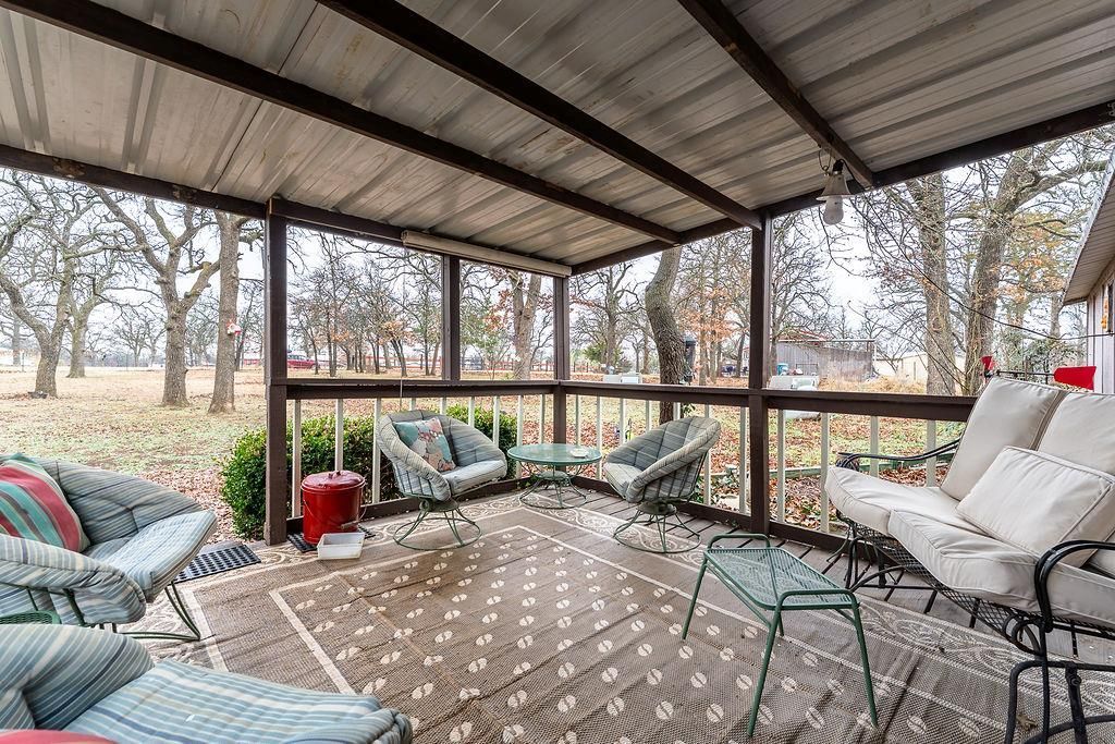 Escape to your own little slice of paradise! This charming 3-bedroom, 1-bath home offers the perfect little bit of country lifestyle while keeping you conveniently close to the city. Nestled on a beautifully wooded 1-acre lot in Logan County, this property is a nature lover's dream, teeming with local wildlife and serene privacy.The 1,024 sqft home features a functional layout and is great for outdoor living with lovely decks on both the front and back, perfect for morning coffee or evening sunsets. New laminate wood floors, new light fixtures and baseboard heaters are just some of the standout features of this home. The property boasts of a detached garage, a carport, and several outbuildings. A standout feature is the one-room bunkhouse equipped with a mini-split, offering a versatile space for guests, a home office, or a studio.Safety and practicality are built-in with two in-ground storm shelter, multiple fenced areas for pets or livestock, and new 100 gallon propane tank with new lines. Enjoy the benefit of Logan County taxes and the peace of a heavily treed interior lot. Rare finds like this-with this much character and options-don't often come along for under $150K!