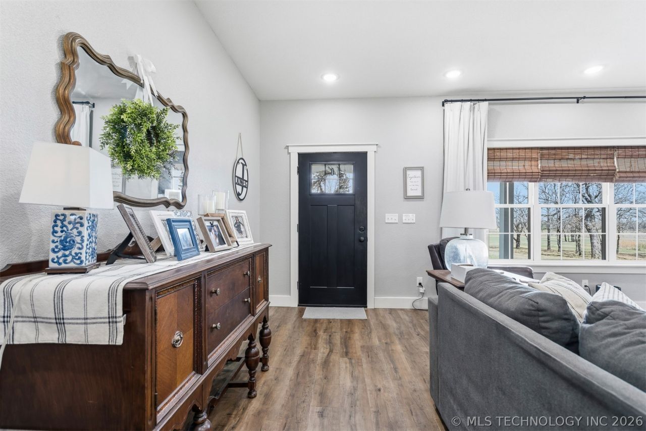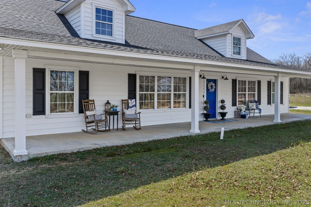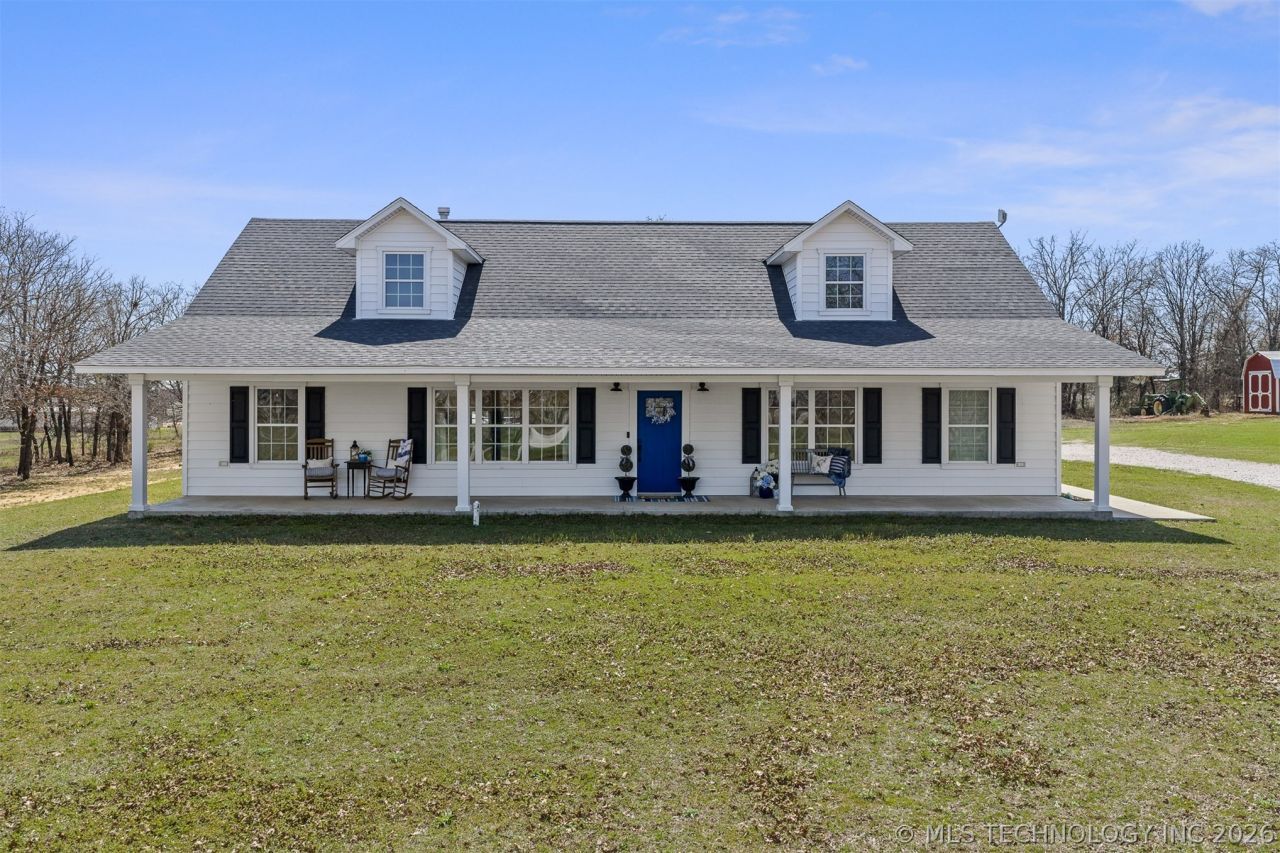 Welcome to peaceful country living just minutes from town! Built in 2020, this beautiful 4-bedroom, 2-bath home offers 2,016 sq ft on 4.75 acres in the highly desirable Lone Grove School District. The open-concept layout creates a comfortable, welcoming space where the living, kitchen, and dining areas flow together. The kitchen features a large island and abundant cabinetry, and the home offers spacious bedrooms, generous closets, and a wonderful primary suite. A large laundry room with exterior entry adds convenience, along with a separate storage room for additional space. Enjoy the outdoors with 8-foot deep covered front and back porches, plus an above-ground pool, storm shelter, storage building, and a pond with a dock. Additional features include two water heaters, a larger electrical panel designed for a future shop, exterior hookup for a whole-house generator, soffit outlets for seasonal lighting, and a private well providing excellent water pressure and supply. Located outside city limits, this property offers the space and freedom of country living while still being conveniently close to town. If you've been looking for acreage and a place that truly feels like home, this property is one you'll want to see!
