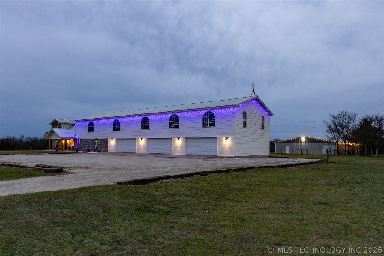 Two-Story Lodge-Style Home on 110 Acres - Hunting Retreat & Venue Potential This Southeastern Oklahoma property is a hunter's paradise with strong investment potential as a lodge, Airbnb, or event retreat. Wildlife is abundant-whitetail deer, turkey, ducks, geese, and eagles. A stocked 5-acre pond offers bass fishing, while an established food plot are within walking distance. The metal shop has concrete floors, electricity, and plumbing is ready for multiple uses-ideal as a lodge facility, storage for gear, or an event barn. Above the 6-car garage, an additional unfinished sq. ft. framed space already designed for expansion, envisioned for up to four bedrooms, three baths, and a kitchen/living area. Finish it out as a dedicated hunting lodge wing, guest quarters, or short-term rental. The home itself provides comfort with rustic charm and modern touches. Downstairs includes a cozy fireplace and open living areas. Upstairs master features a soaking tub, walk-in shower, his-and-hers closets, and a private balcony overlooking the pond-perfect for unwinding after a day outdoors. Beyond hunting, this property also offers wedding and event potential in an area with very few venue options. The pond creates a stunning backdrop for outdoor ceremonies, while the shop can easily be customized into a reception barn with string lights, draping, and banquet seating. The residence serves as a bridal house or lodge, with unfinished upstairs space that can be tailored into bridal or groom's quarters or guest lodging. Located just 10 miles from Choctaw Casino and Durant, 20 miles from the coming Margaritaville Resort, and 25 miles from Lake Texoma, the Hard Rock Hotel, and Reba's Place, this property is positioned in a growing recreational and tourism corridor. Whether you envision a private hunting retreat, rental lodge, or a multi-use destination blending weddings, hunting weekends, and family gatherings, this property is primed and ready.