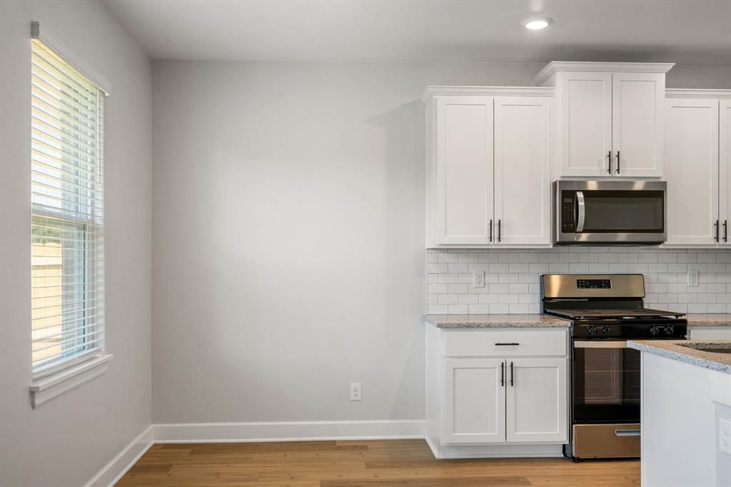 This beautifully designed single-story home offers a bright open-concept layout that seamlessly connects the living, dining, and kitchen spaces, creating a comfortable setting for both everyday living and entertaining. The kitchen features granite countertops, white cabinetry, stainless steel appliances, a subway tile backsplash, and a large center island with sink and additional seating space. Wood-look flooring flows throughout the main living areas, complemented by recessed lighting and abundant natural light.The spacious primary bedroom provides a relaxing retreat and includes a private en-suite bathroom with a granite vanity, modern fixtures, a walk-in shower with tile surround, and a generous walk-in closet. Additional rooms provide flexible space for bedrooms, a home office, or guest accommodations.Exterior features include a covered front entry, attached two-car garage, and a large fully fenced backyard with ample green space for outdoor living, recreation, or pets. The backyard also offers convenient rear access to the home, making it ideal for everyday use and entertaining.This home combines modern finishes, functional design, and a spacious outdoor area for comfortable living.
