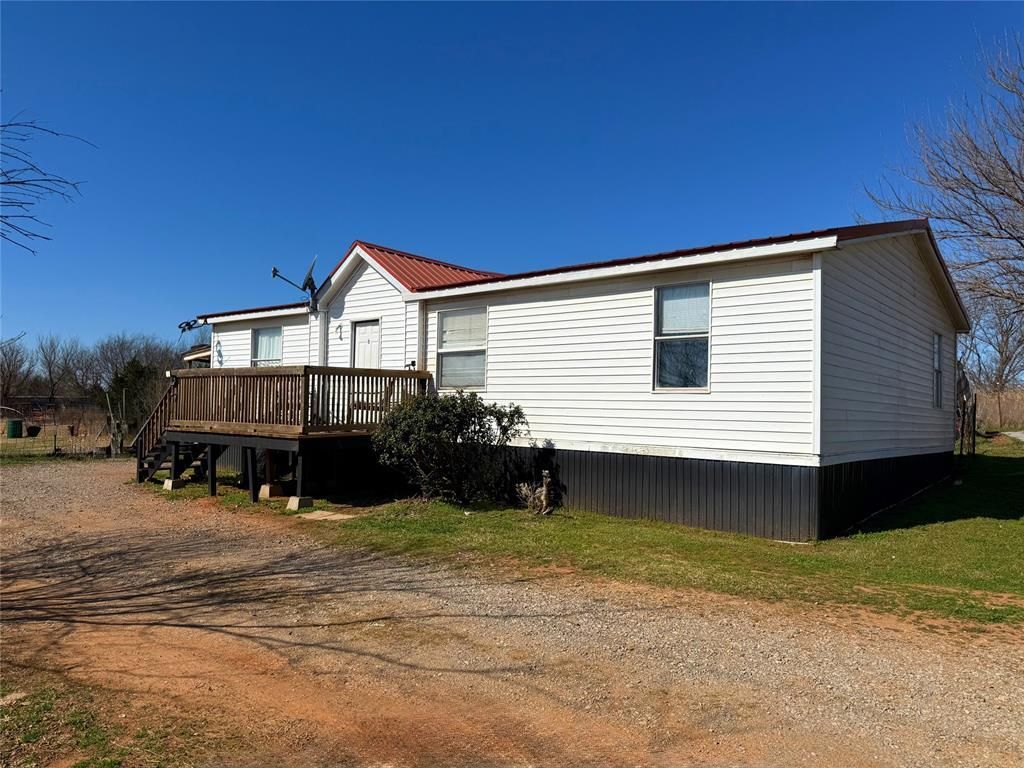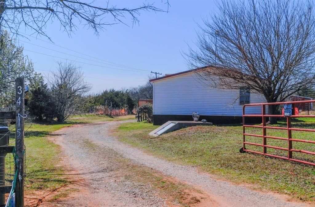 3.47 acres- no HOA and no restrictions!! Escape to the country with this well-maintained 3 bedroom, 2 bathroom home sitting on 3.47 private acres! Tucked away from the road, this property offers peace, privacy, and plenty of space to spread out. The home features a functional layout two bedrooms on one side with a bathroom and master on the other side of the home with bathroom and laundry room. The kitchen has a pantry, dishwasher, dining room area along with access to laundry room and with sliding French doors to the back porch! Metal roof! Outside you'll find multiple outbuildings providing great space for storage, hobbies, animals, or equipment, along with a storm shelter for added peace of mind during Oklahoma weather. With no HOA and no restrictions, the possibilities are wide open-bring your animals, start a garden, or simply enjoy the quiet country setting. Schedule a showing today!