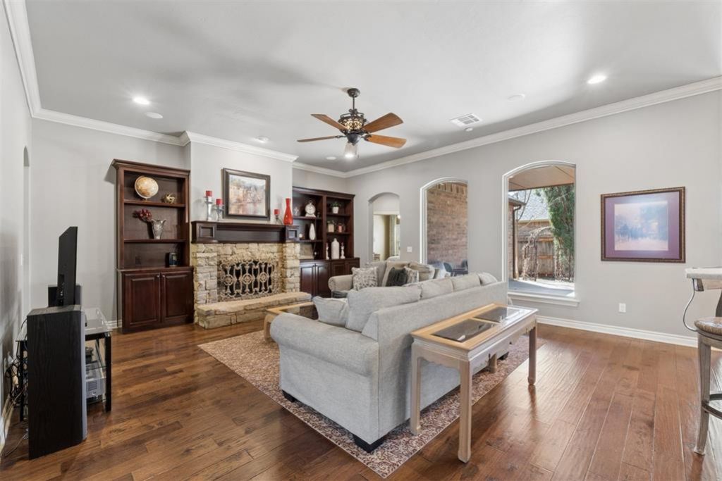 Tucked away in the desirable 'The Park section of Hidden Creek, this beautifully maintained home offers privacy, charm, and thoughtful design throughout. Situated on a quiet cul-de-sac with access to a private walking trail, the setting is just as appealing as the home itself.Inside, you'll find an open-flow floor plan filled with natural light and oversized rooms that make the home feel even larger than its square footage. Quality craftsmanship shines through with gorgeous woodwork, abundant storage, and well-planned spaces at every turn.The gourmet kitchen is a standout, featuring generous counter space, ample cabinetry, and a spacious pantry-perfect for both everyday living and entertaining. A charming study with a closet offers flexibility for a home office or additional bedroom.The oversized primary suite includes an impressive closet with a built-in chest of drawers, while the large private patio provides a peaceful outdoor retreat.Additional highlights include a storm shelter in the garage, low HOA dues, and the pride of ownership that comes with a truly well-cared-for home.
