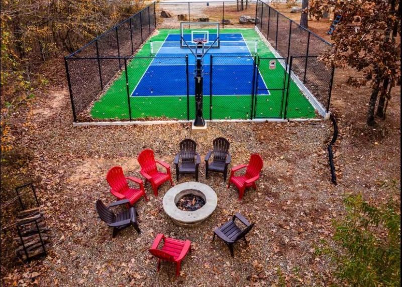 Nestled just off the paved Sugarberry Trail, Peaceful Oasis is a beautifully designed, traditional-style cabin offering the perfect blend of comfort, luxury, and outdoor adventure. This highly sought-after location places you near top attractions like Naaman's BBQ and the Sasquatch Candy Den, making it an excellent investment or personal retreat. Step inside to an open floor plan flooded with natural light from a wall of windows. The spacious living room invites you to relax with comfy seating and a stone fireplace, while the well-equipped kitchen boasts gorgeous cabinetry and countertops, ensuring every meal is a delight. A main-level half bath adds extra convenience. Each of the three King bedrooms provides a restful retreat, with one featuring a private balcony for a peaceful morning escape. The three full bathrooms showcase walk-in showers, offering a spa-like experience. Outdoor living is just as impressive! The covered deck includes comfortable seating, a fireplace, a TV, and space to grill and dine, all while overlooking the beauty of nature. Unwind in the hot tub, or gather around the firepit for cozy evenings under the stars. For fun and entertainment, this property features a kids' playset and an exciting Sports Court, perfect for pickleball or basketball! Whether you're looking for a private getaway or a rental investment, Peaceful Oasis is an opportunity you don't want to miss. Take a look at the video tour and schedule a private showing today!
